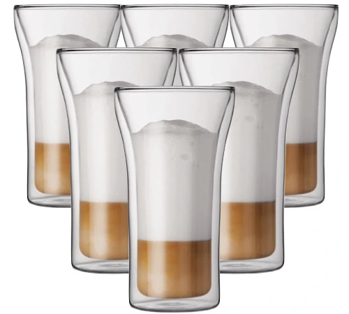 6 verres expresso Assam double paroi de la marque Bodum de 40 cl. Ils sont également disponibles en 10 cl, 20 cl et 25 cl. Vous pouvez également les trouver en panaché de différentes tailles.