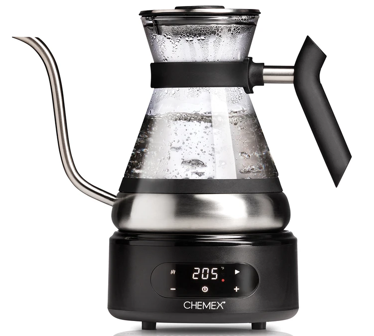 Sa grande capacité de 1,2 L permet de s’adapter parfaitement à une Chemex, vous n’aurez plus à faire chauffer de l’eau deux fois pour une extraction.