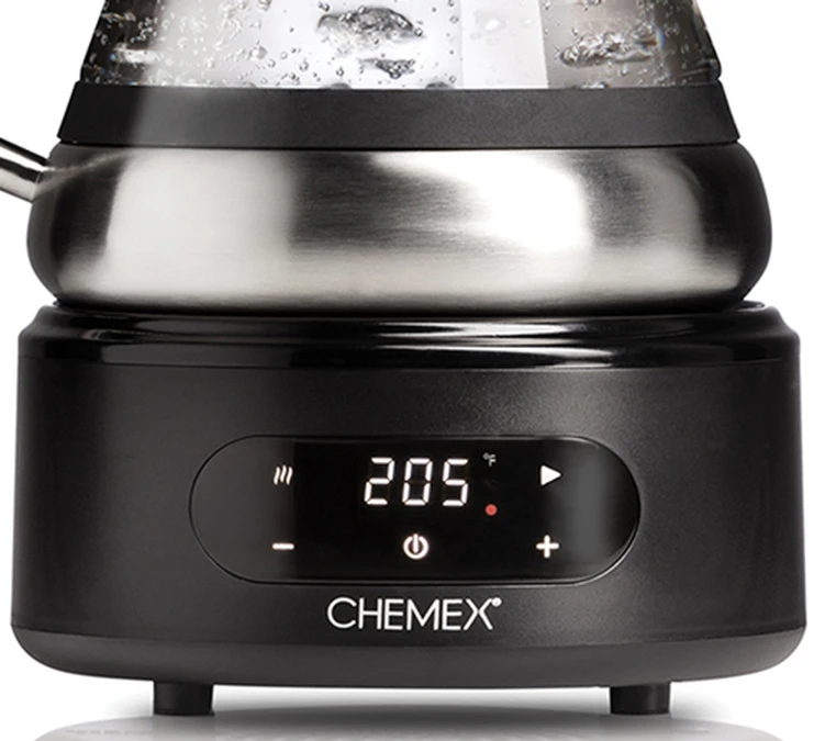 Prenez le contrôle de votre bouilloire avec l’écran digital de la Chettle de Chemex. Il vous permet d’allumer votre bouilloire, de visualiser la température que vous avez besoin et de la paramétrer en degré Celsius ou Fahrenheit.