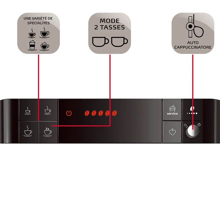 Melitta offre avec cette Passione un résultat en tasse incomparable. Grâce à ses nombreux réglages (intensité, longueur en tasse, température…) paramétrez votre machine pour des boissons café parfaites : expresso, ristretto, café allongé, cappuccino, latte macchiato … tout est permis !